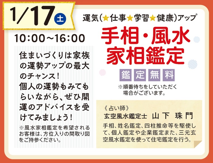 ※風水家相鑑定を希望されるお客様は、方位入りの間取り図をご持参ください。