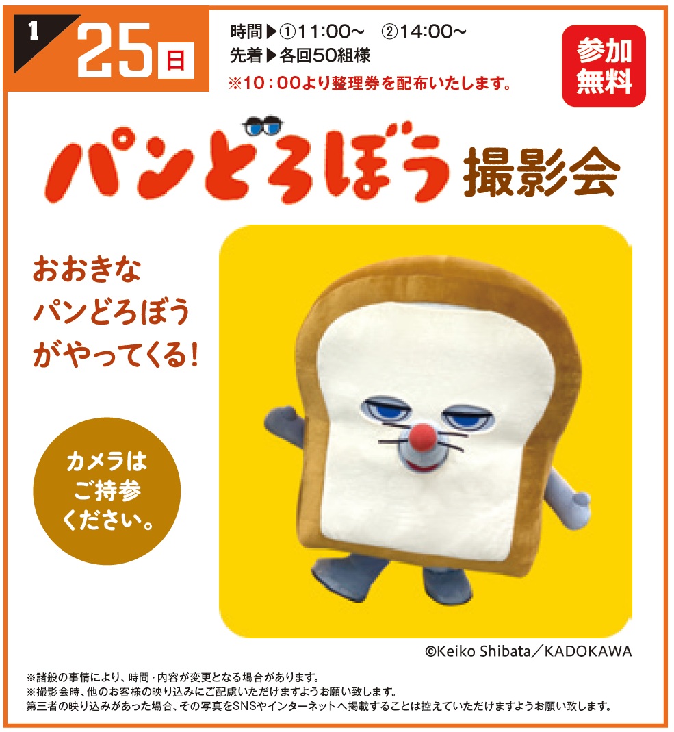 1/25(日)パンどろぼう 撮影会 おおきなパンどろぼうがやってくる!