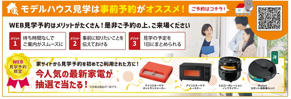 家サイトからモデルハウス見学予約をされた方限定で素敵な賞品が当たる抽選会に参加頂けます。