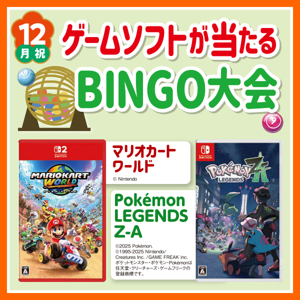 1/12(月祝) ✨ゲームソフトが当たるBINGO大会✨