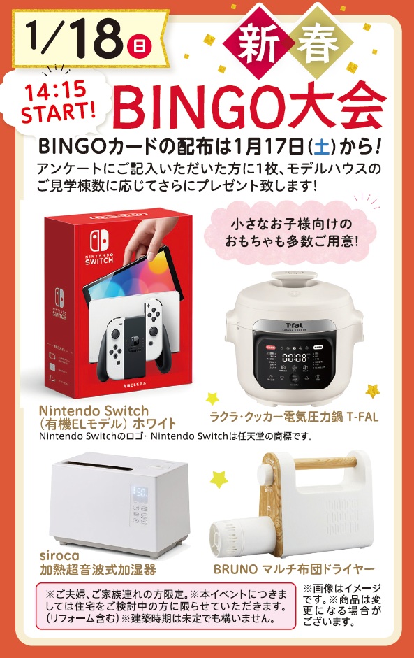 アンケートにご記入いただいた方に1枚、モデルハウスのご見学棟数に応じてさらにBINGOカードをプレゼントいたします。