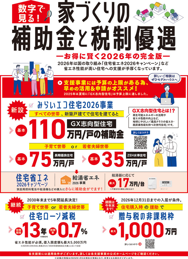 【2026年完全版】数字で見る!家づくりの補助金と税制優遇