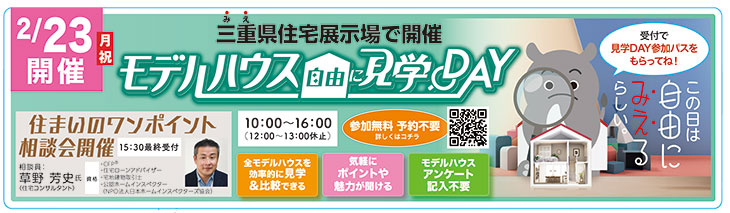 2/23(月祝) モデルハウス🏠自由に見学🔍DAY