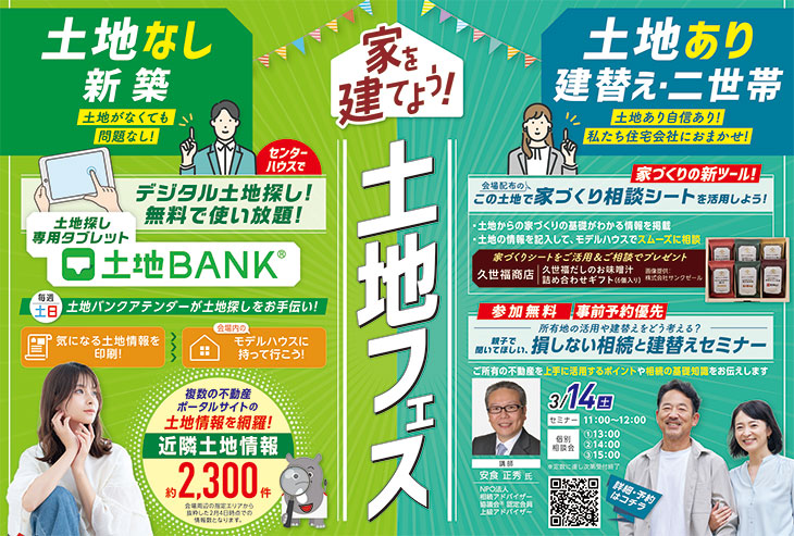 【土地フェス】3/14(土)ここでしか聞けない!損しない相続と建替えセミナー