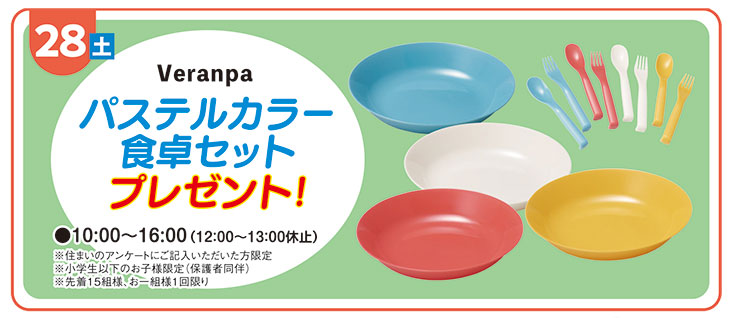 3/28(土) 🍽️Veranpa パステルカラー食卓セットプレゼント🍽️