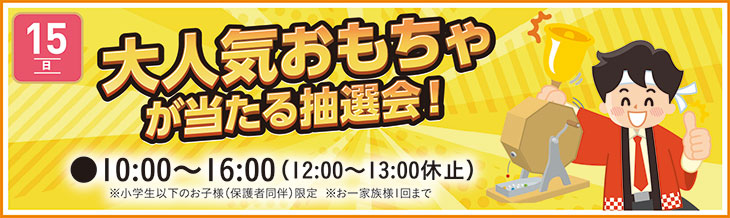 3/15(日) 🤖大人気おもちゃが当たる抽選会🎯