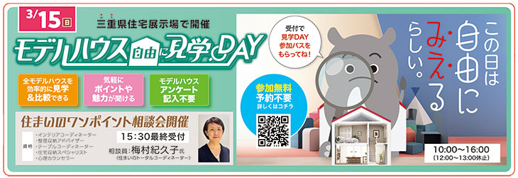 3/15(日) モデルハウス🏠自由に見学🔍DAY