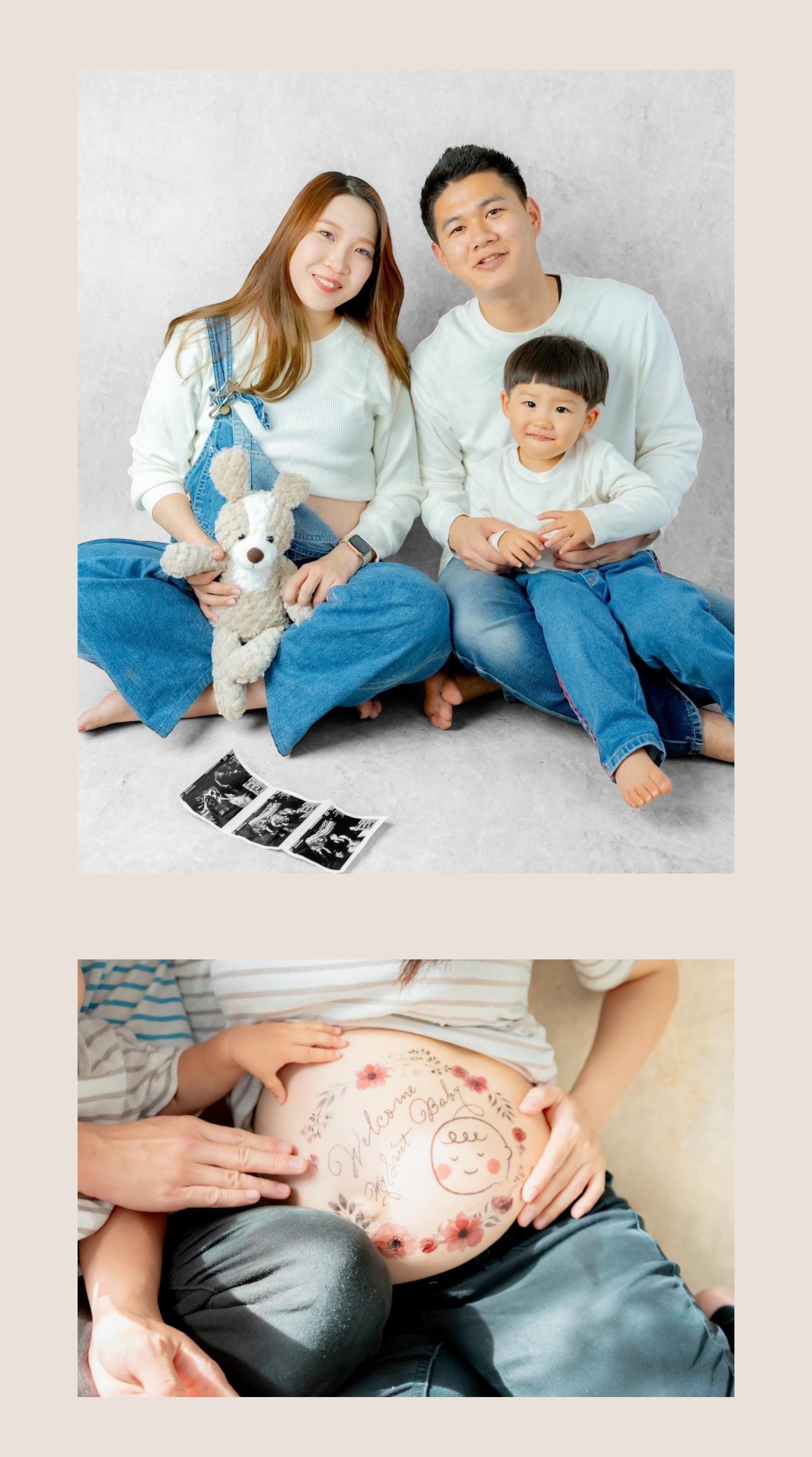 エコー写真や赤ちゃんへの贈り物など、一緒に写りたいものの持参も可能です!