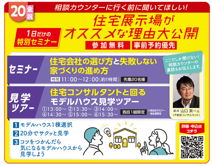 3/20(金祝) 【特別セミナー】住宅会社の選び方と失敗しない家づくりの進め方
