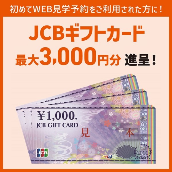 見学予約ご利用で「JCBカード最大3,000円分」進呈!