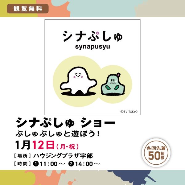 1月12日(月・祝)シナぷしゅ ショー ぷしゅぷしゅと遊ぼう!