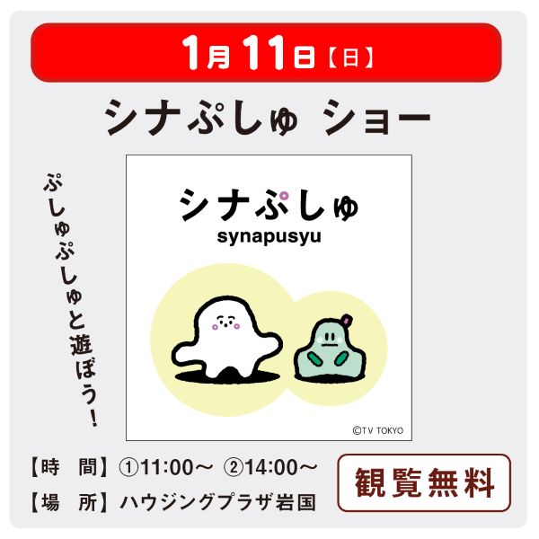 1月11日(日)シナぷしゅ ショー ぷしゅぷしゅと遊ぼう!