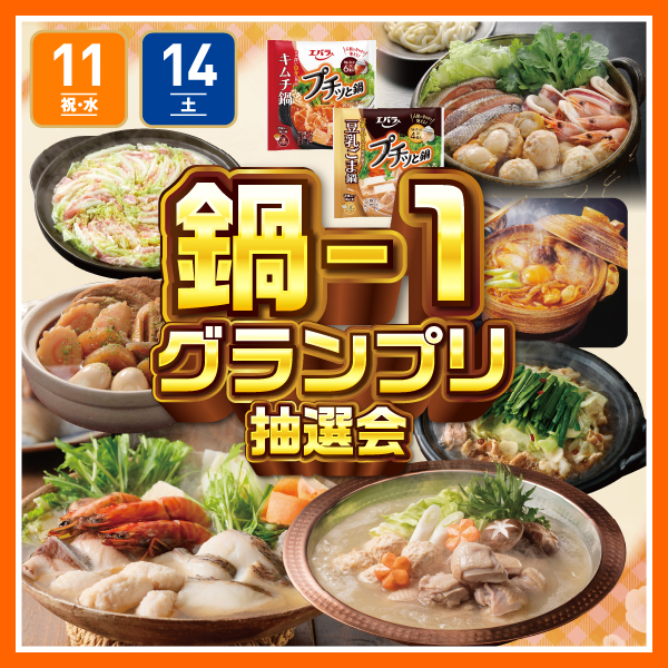 2/11,14(水祝,土) 🍲鍋-1グランプリ抽選会🏆