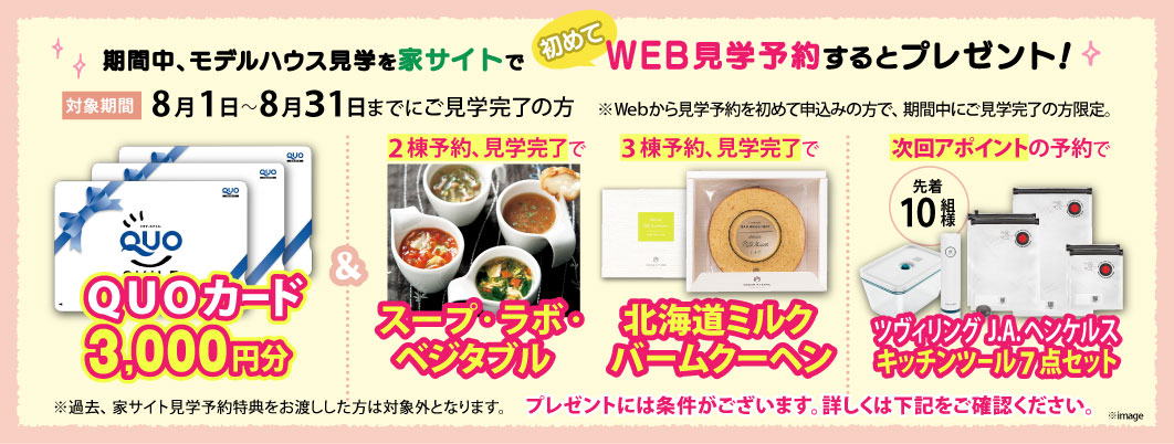 ※プレゼントは1家族様1回限り。複数棟ご予約いただいても1回のみとなります。