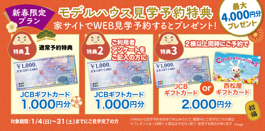 ※当申込フォームからご予約し、モデルハウスをご見学&アンケート記入された方が対象。