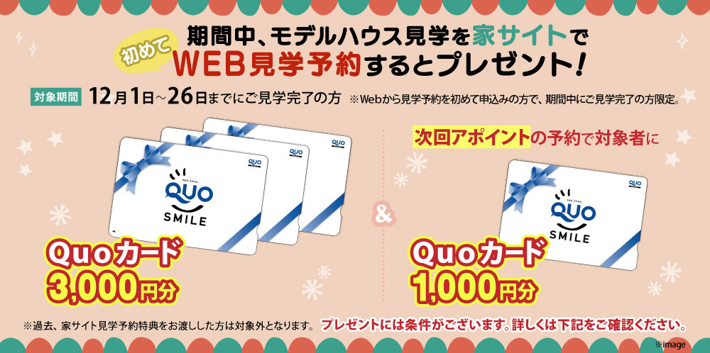 ※プレゼントは1家族様1回限り。複数棟ご予約いただいても1回のみとなります。