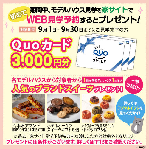- ご予約のキャンセル時はモデルハウスに直接ご連絡をお願いいたします。