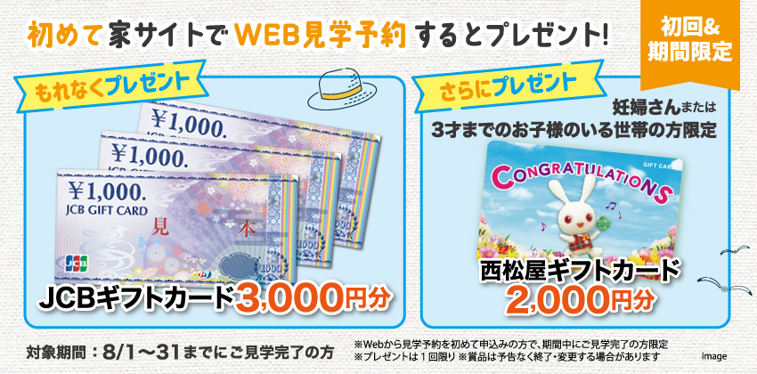 ※当申込フォームからご予約し、モデルハウスをご見学&アンケート記入された方が対象。