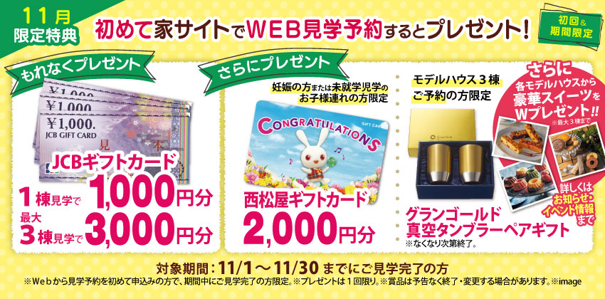 ※当申込フォームからご予約し、モデルハウスをご見学&アンケート記入された方が対象。