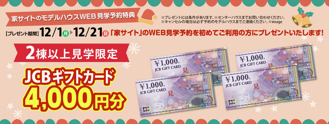※当申込フォームからご予約し、モデルハウスをご見学&センターハウスでアンケート記入された方が対象。