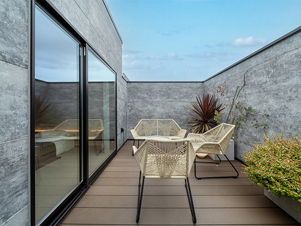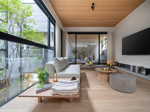 中庭を楽しむ3階建てコートハウス