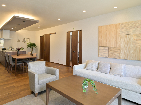 業界最高クラスの性能と、上質なデザインを兼ね備えた「グラン・スマート」。表情豊かな大判外壁タイルが印象的な佇まいです。オリジナルでデザイン・設計された、キッチンやドレッサーなどは、使いやすさを追求しながらも、空間を彩るインテリアとして木目同調の高品質なテクスチャーを採用。効率的に使えるクローゼット、玄関をすっきりと保てるシューズクロークなど、ライフスタイルに合わせた収納プランもご提案しています。そして性能は、一年を通して快適な室内環境を実現する「超気密・超断熱」性能をはじめ、地震や台風といった災害に強いことも大きな特徴。より快適に、より豊かに、ワンランク上の暮らしを叶える住まいです。