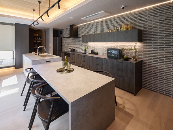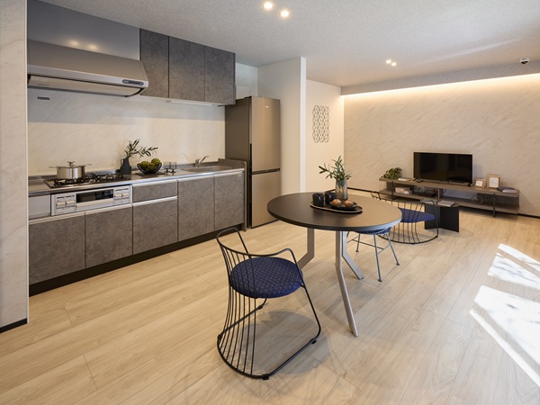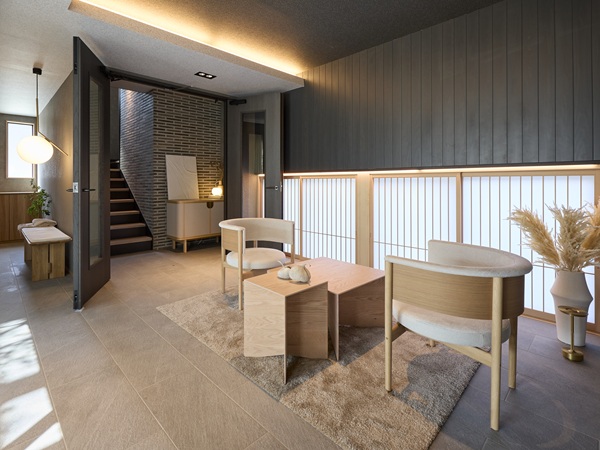 木下工務店の京都四条展示場は、スクエアで洗練された存在感のある外観デザインが印象的なモデルハウスです。住まいの中心に配置された中庭が、ご家族のプライバシーを守りながらも家中に開放感と安定した採光をもたらします。間取りでは二世帯や賃貸併用の住まい方もイメージできる、都市型住宅をご提案しております。