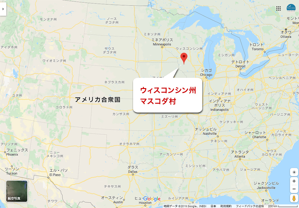 アメリカ中北部、ウィスコンシン州は五大湖のうちの二つの湖に面し、その大半を森におおわれた緑の多い州である。この州のグラント郡とアイオワ郡にまたがる1番大きな村マスコダの森、その外れにある傾斜した伐採地に今回紹介する家は建っている。