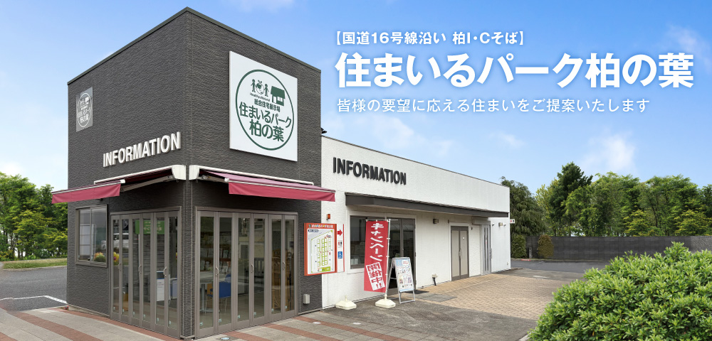 アクセス簡単・住まいづくり体感!柏I・Cすぐ国道16号沿い、理想の住まいが見えてくる!住まいづくりのことなら総合住宅展示場 「住まいるパーク柏の葉」へ。