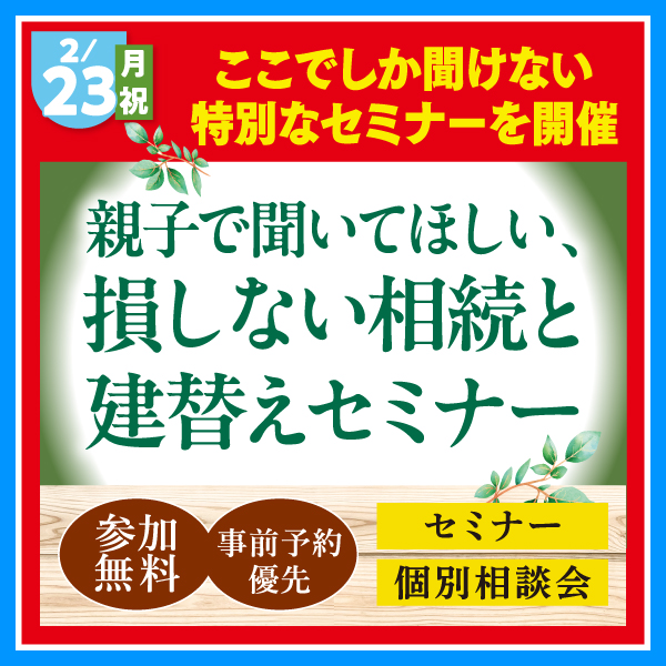 【土地フェス】2/23(月祝)ここでしか聞けない!損しない相続と建替えセミナー