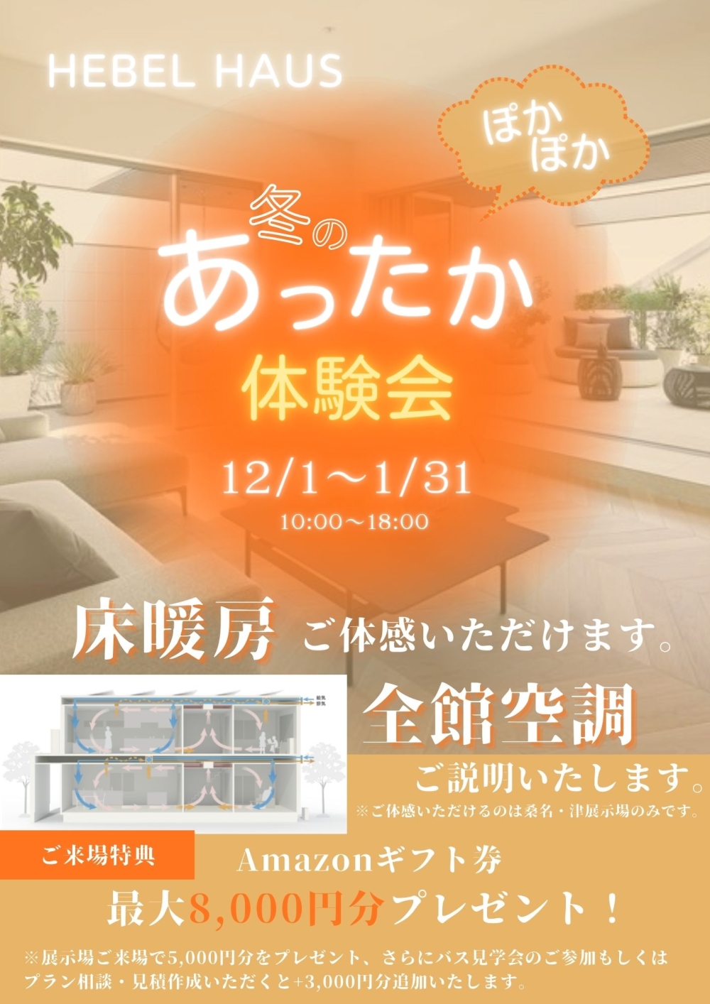 ヘーベルハウスは冬寒くないのか?!展示場でご体感ください。【床暖房・全館空調】