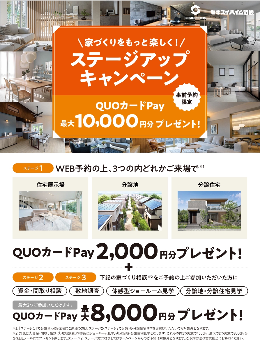 WEB予約の上、「住宅展示場」「分譲地」「分譲住宅」どれかご来場でQUOカードPay2,000円分プレゼント!