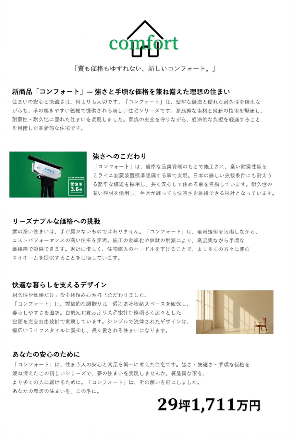 新発売【コンフォート】 365日、心地よい家。 ―シンプルながら印象に残る。