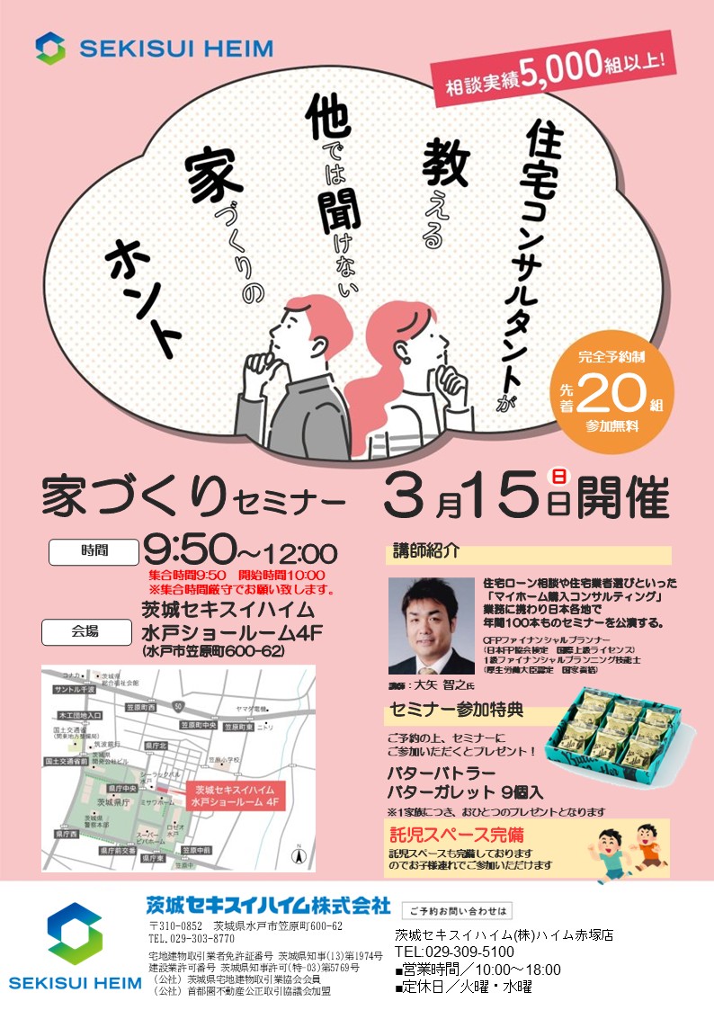 | 会社名 | 茨城セキスイハイム(株) グランツーユー水戸笠原展示場 |