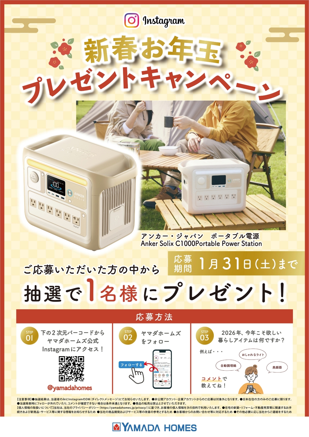 ヤマダホームズでは、公式Instagramの「フォロー」&「コメント」で