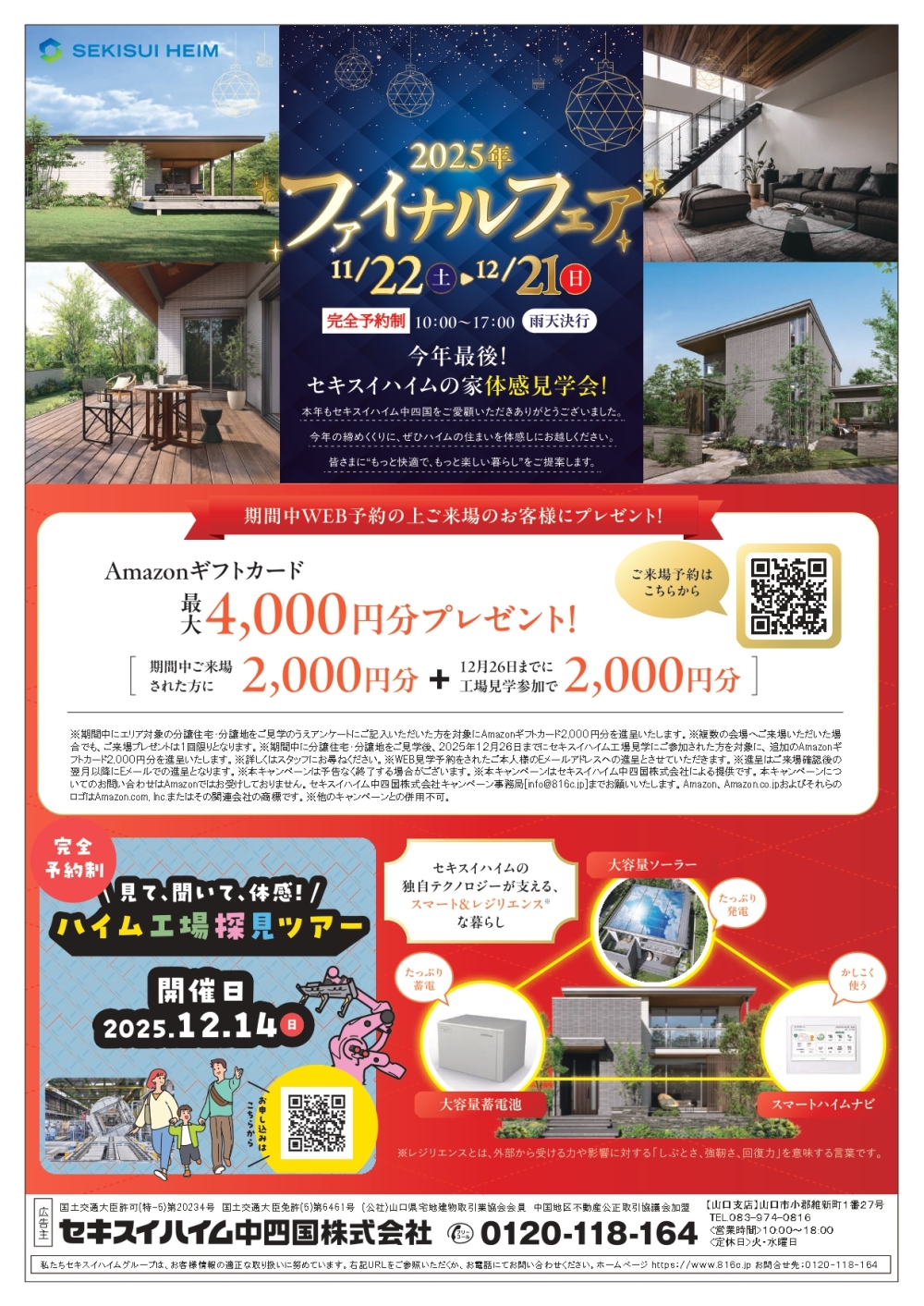 宇部展示場 0836-32-0721(※定休日:火・水・12月4日(木))