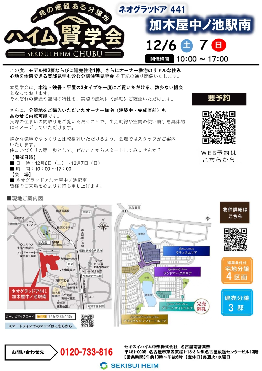 セキスイハイム中部 刈谷展示場・知立展示場では、随時家づくりのご相談を承っております。 本イベントに関するお問い合わせは、下記までお気軽にどうぞ。
