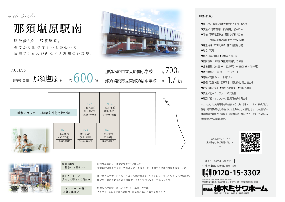 なかなか土地の出ない希少エリア、那須塩原駅まで600m、都内への新幹線通勤も可能です。