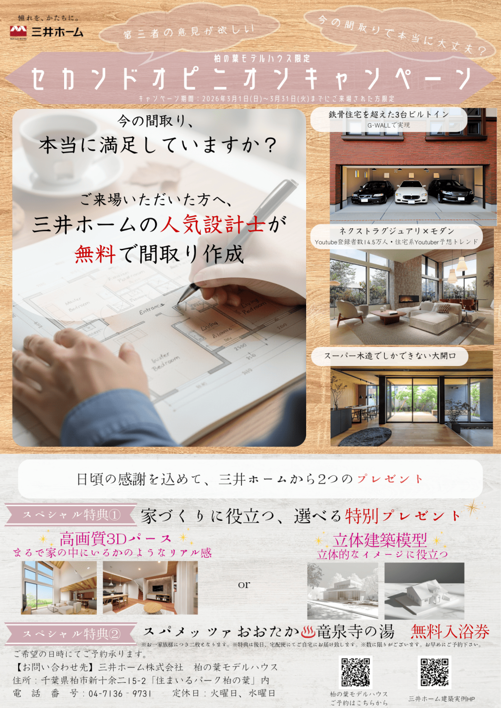 ※特典は初めて三井ホームへご来場ただいた方に限ります。