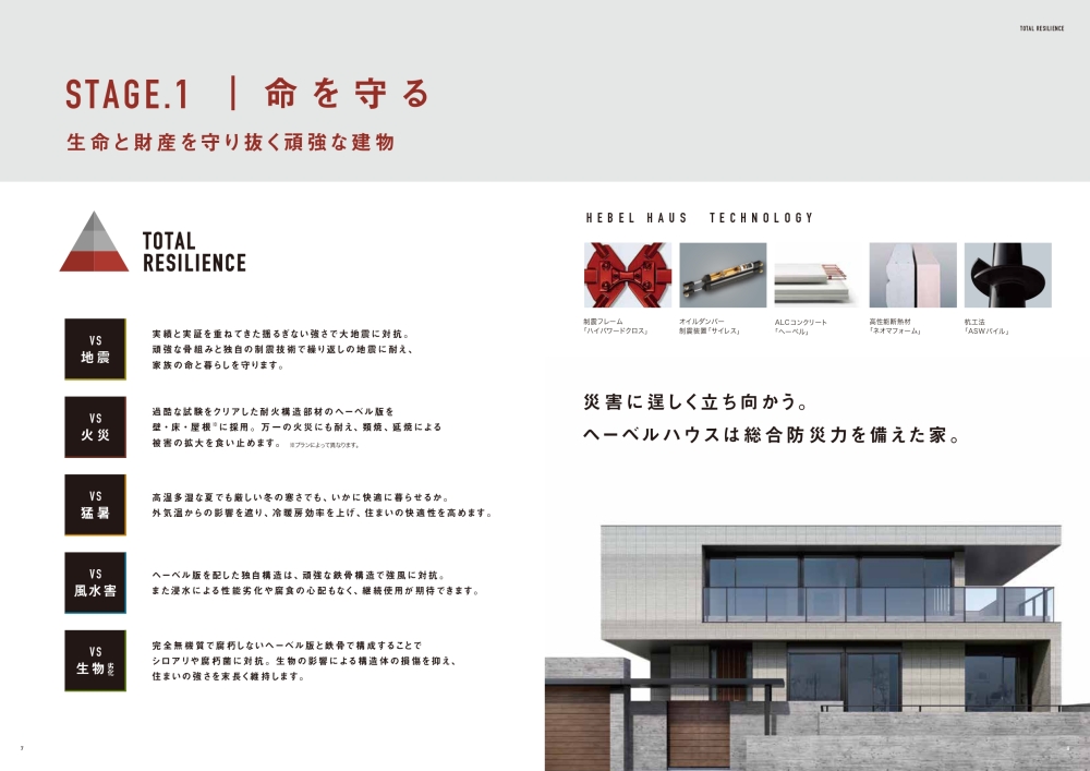 ヘーベルハウスの防災住宅は、鉄骨構造とALCコンクリート外壁で、圧倒的な耐久性を実現。