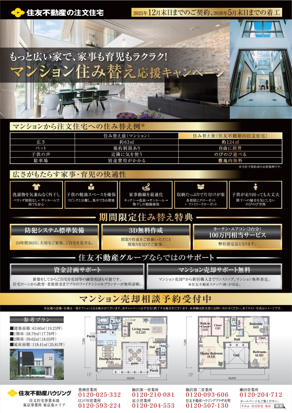 2025年12月末日までにご契約いただき、2026年5月末日までに着工可能な方へ、応援キャンペーン設備パッケージ・期間限定住み替え特典をご用意いたしました!