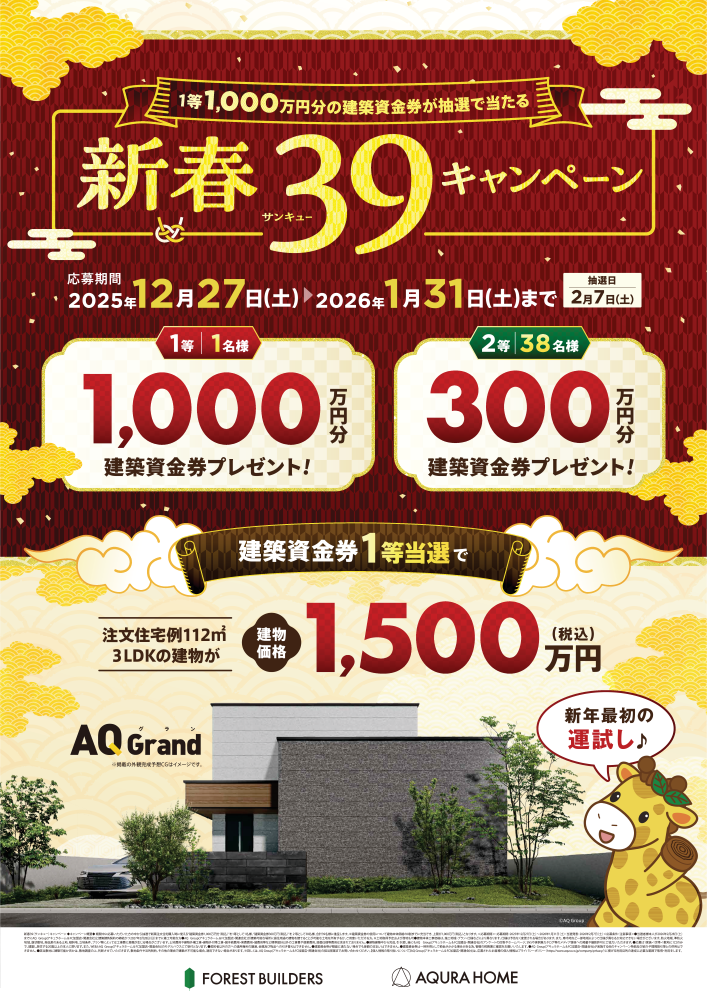 アキュラホームでは、新春39キャンペーンを開催中です♪