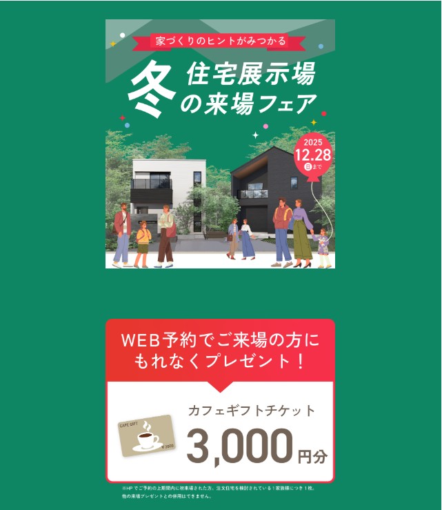 WEB予約で新規ご来場の方にもれなくカフェギフトチケット3,000円分プレゼント!