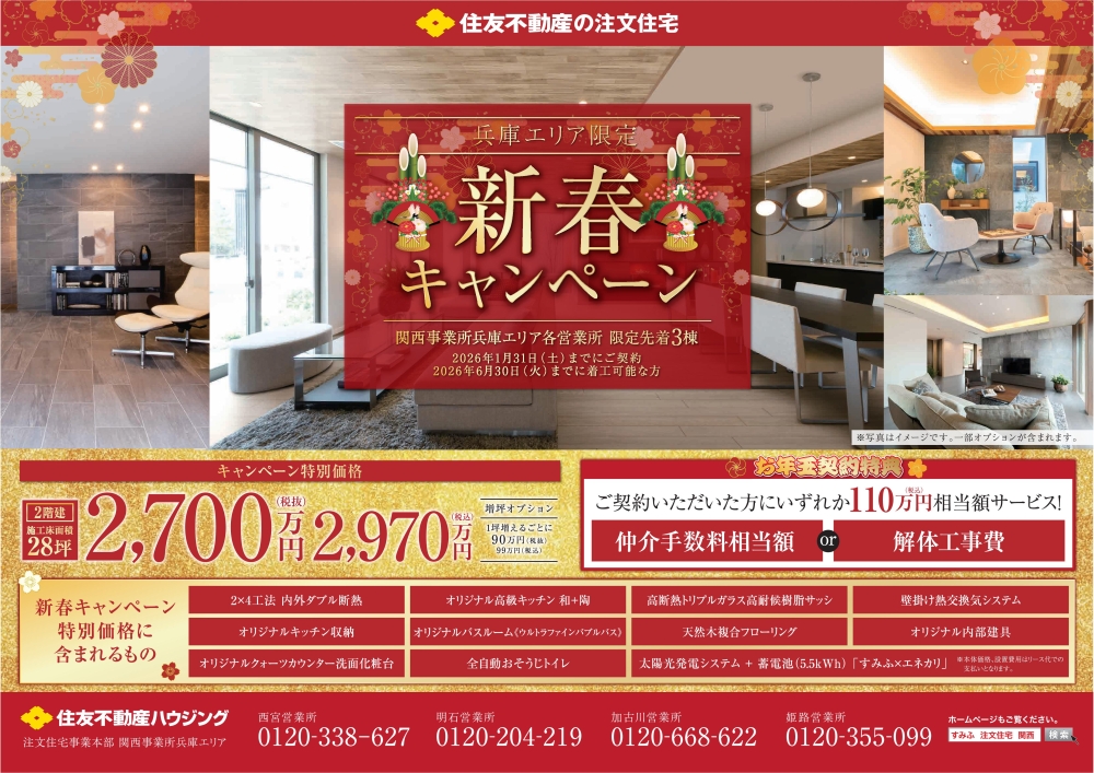 2026年1月31日(土)までにご契約、かつ2026年6月30日(火)までに着工可能な方へ、キャンペーン特別価格をご用意いたしました。