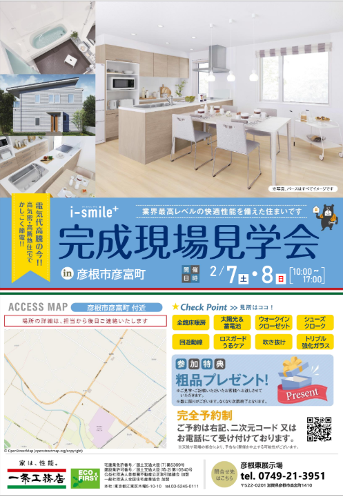 令和8年2月7日(土)・8日(日)AM10:00~PM17:00彦根市彦富町で完成現場見学会を行います。