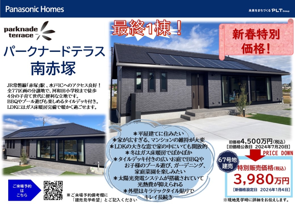 特別価格!!人気の「平屋」建売分譲~パークナードテラス南赤塚~