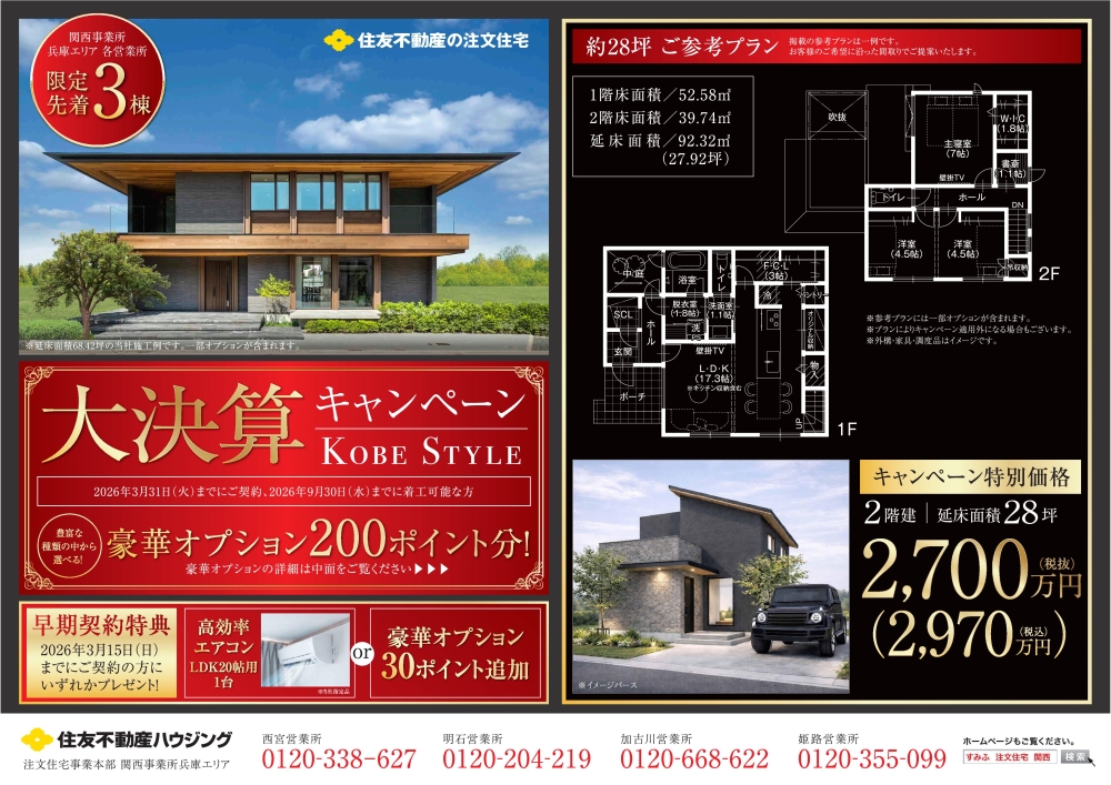 2026年3月31日(火)までにご契約、かつ2026年9月30日(水)までに着工可能な方へ、キャンペーン特別価格をご用意いたしました。