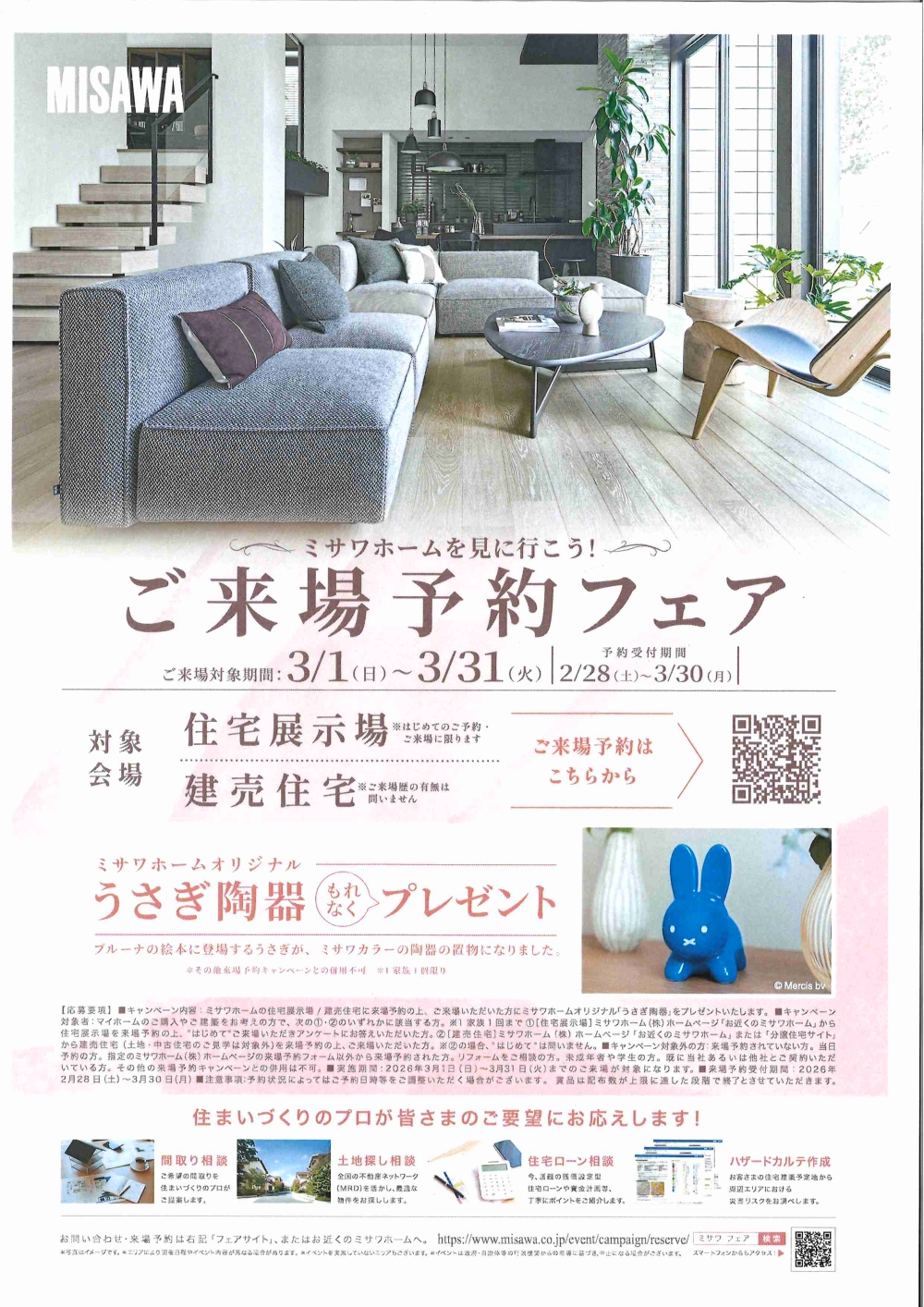 ※こちらはミサワホームの企画になりますので、ミサワホームのホームページ(チラシQRコード)よりご予約ください。