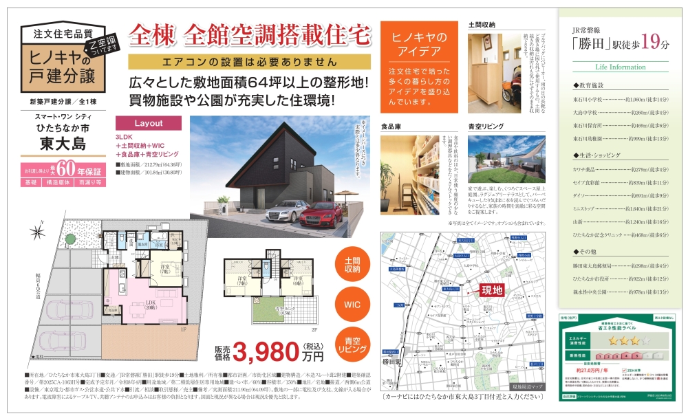 ひたちなか市東大島に建売り分譲中!全館空調搭載!4月完成予定
