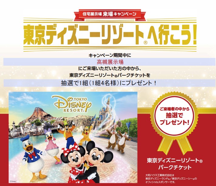今回は、展示場来場者対象「東京ディズニーリゾート®チケットプレゼント キャンペーン」
